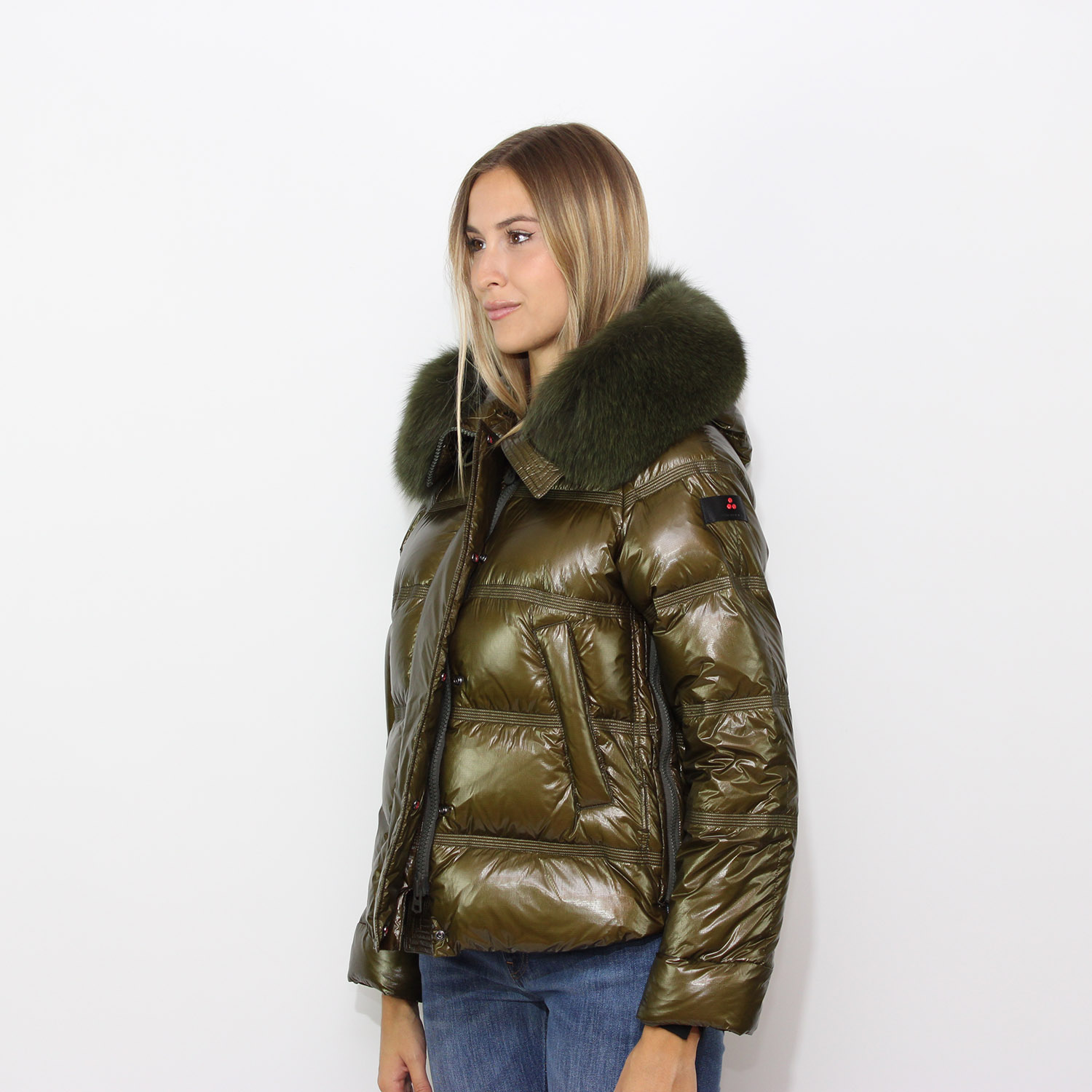 PeutereyPiumino Takan Mid in nylon ripstop lucido con bordo pelliccia verde edera